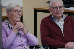 Rien had natuurlijk een leuke speech klaar en bedankte Jan voor zijn tomeloze inzet voor het “Ambiancekoor” al die jaren. Altijd was hij aanwezig bij alle repetities en alle optredens, zover als dat mogelijk was. Hij was een trouw lid. Zijn vrouw Thea kreeg ook nog een bos bloemen aangeboden voor het 60 jarig huwelijk, die bos bloemen ging Ria met plezier geven.
